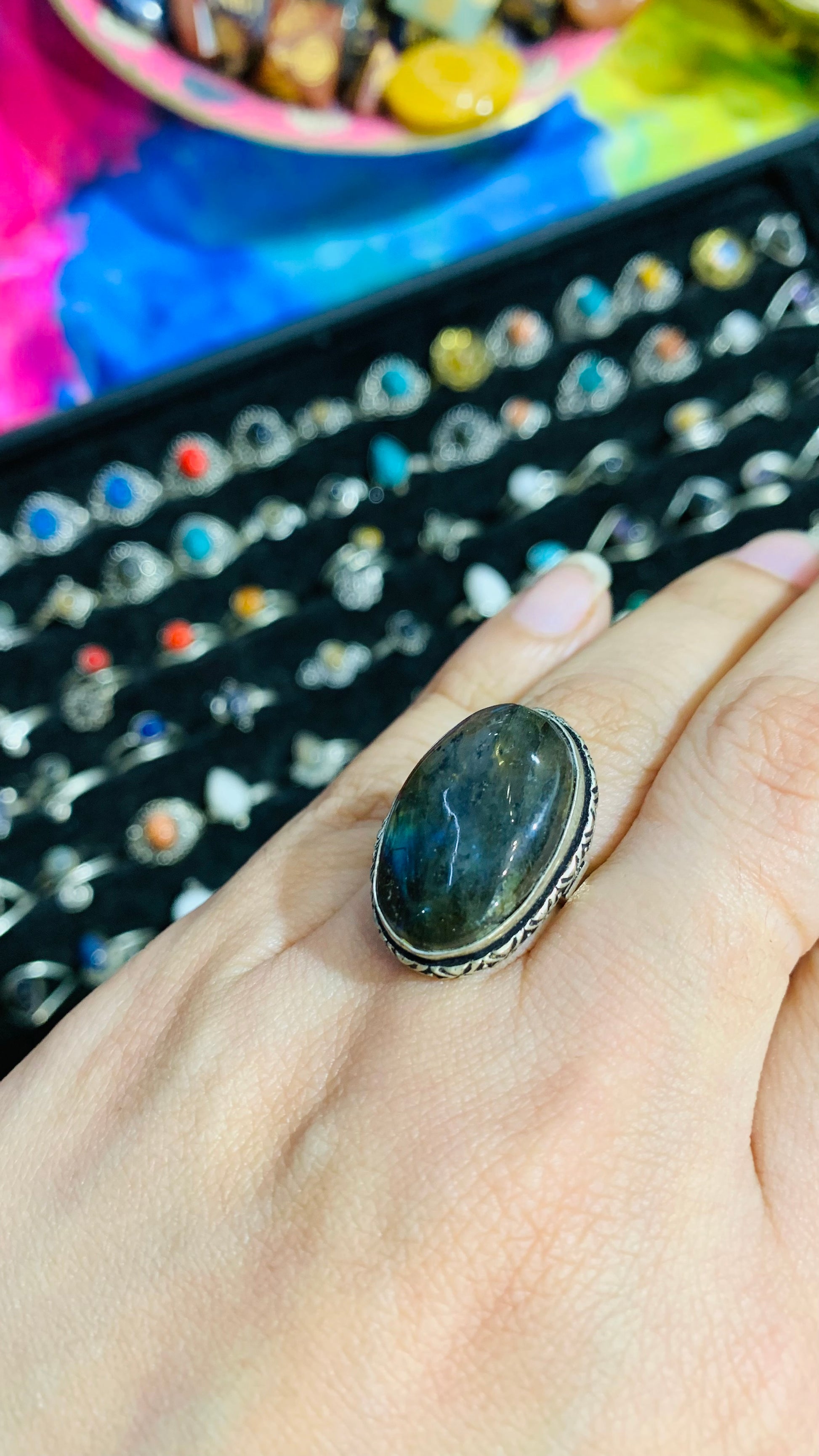 Boho Handcrafted ring with Natural stone in metal frame .This breathtaking statement natural Gemstone ring in Solid metal is absolutely beautiful in its simple, solid design and real gemstone. With such beautiful and intricate detailing, a bright and bold stone all embedded in metal frame , our Bohemian Ring is an incredible piece.Standing out beautifully on its own.