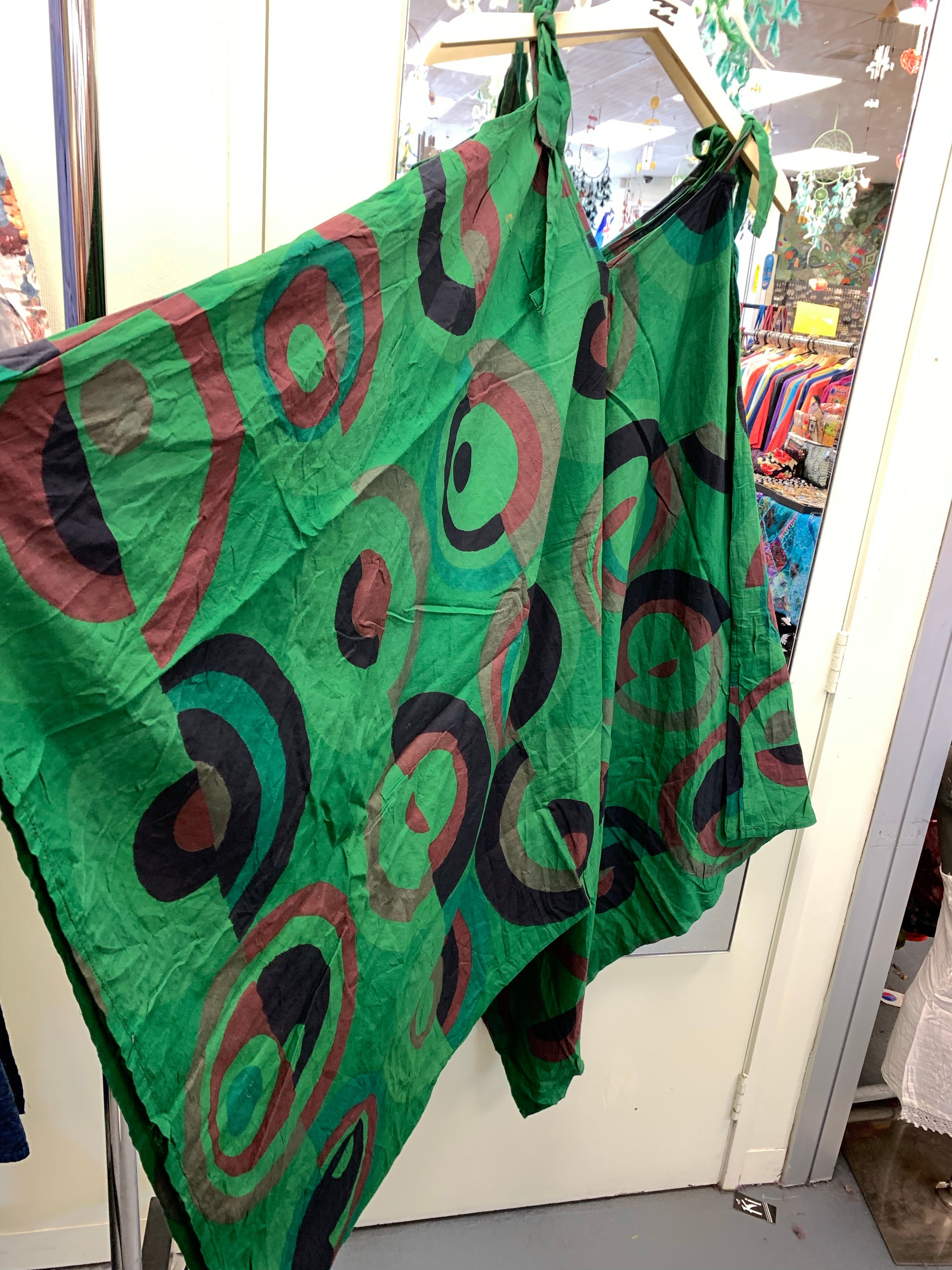 Boho Trance cotton Romper dress with tie up shoulder straps and waist belt.