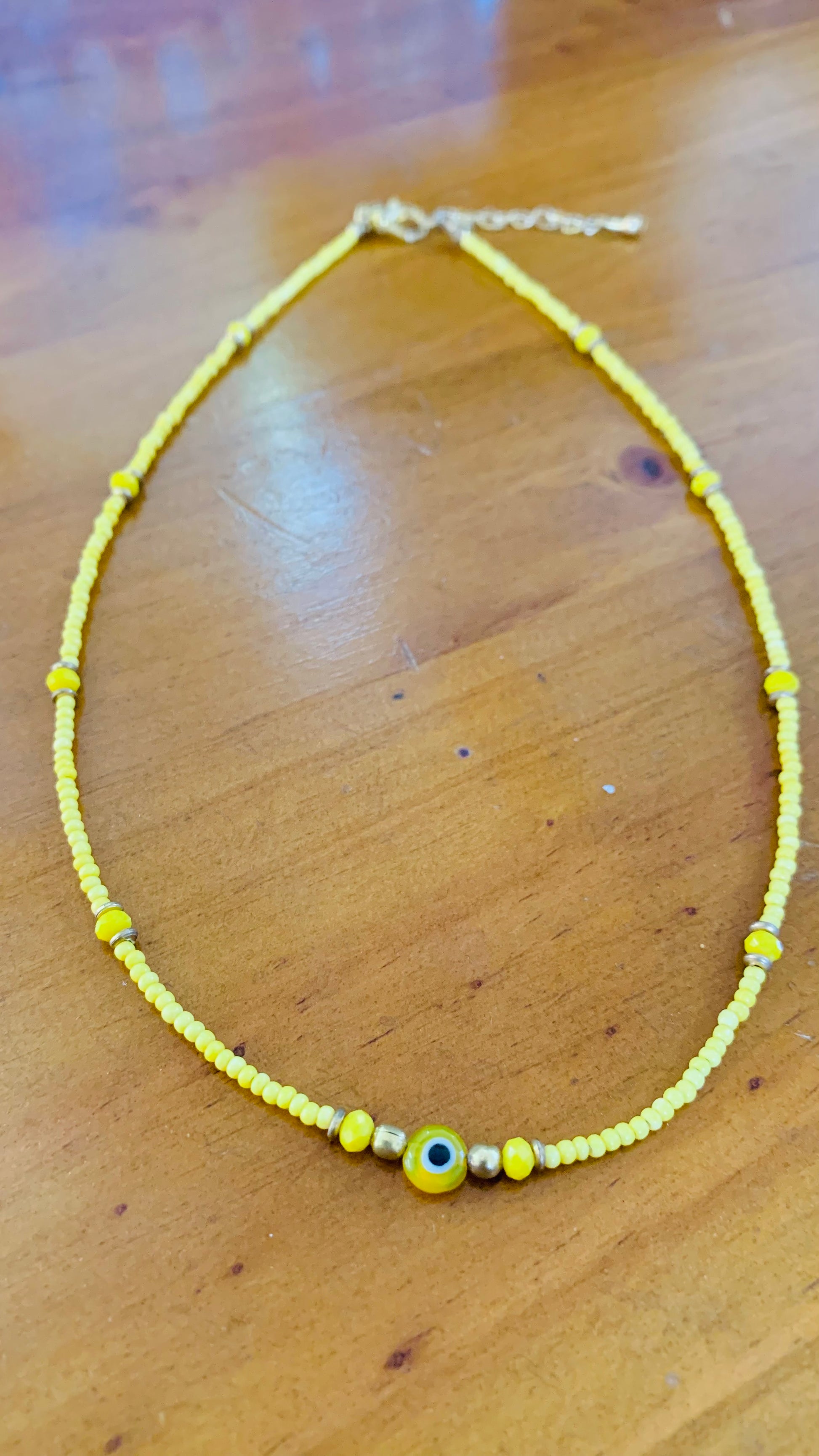 Bohemian handcrafted Evil Eye beads necklace with adjustable length.