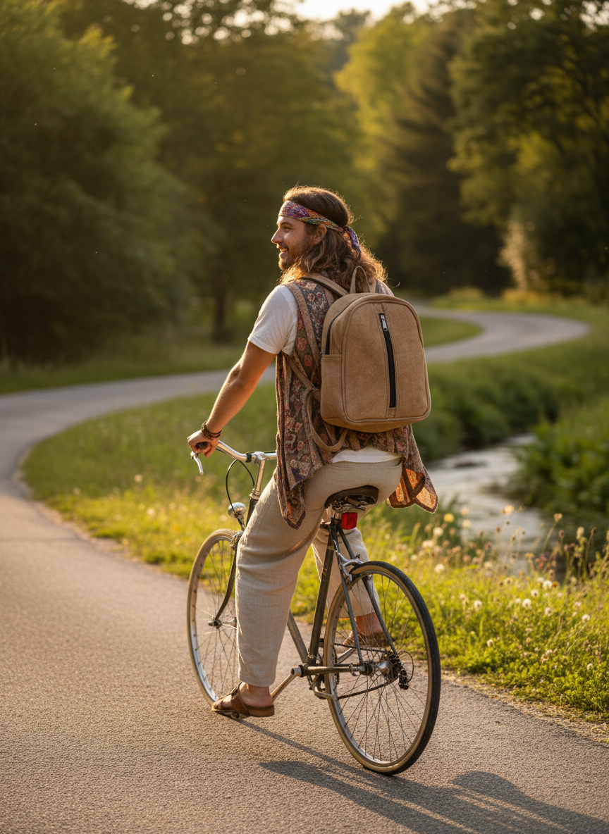 Bohemian leather Suede backpack with adjustable shoulder strap and zipper