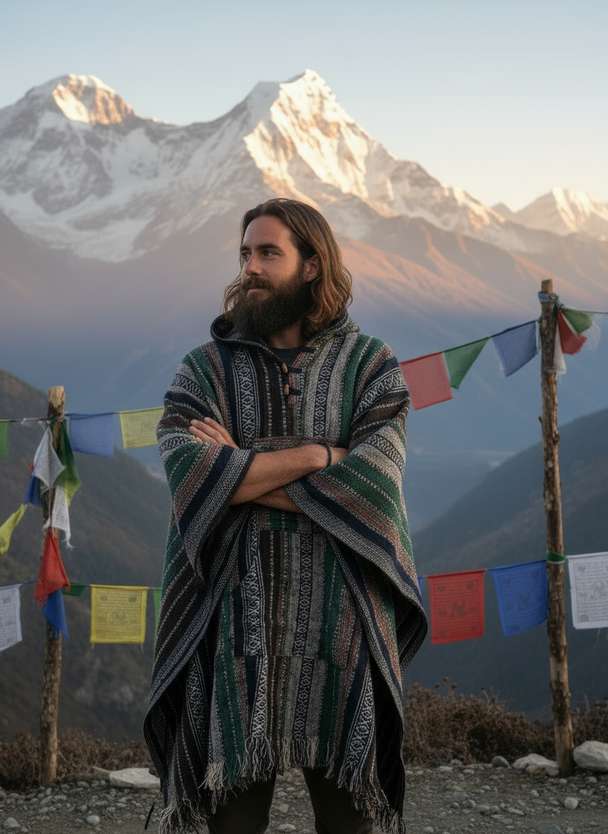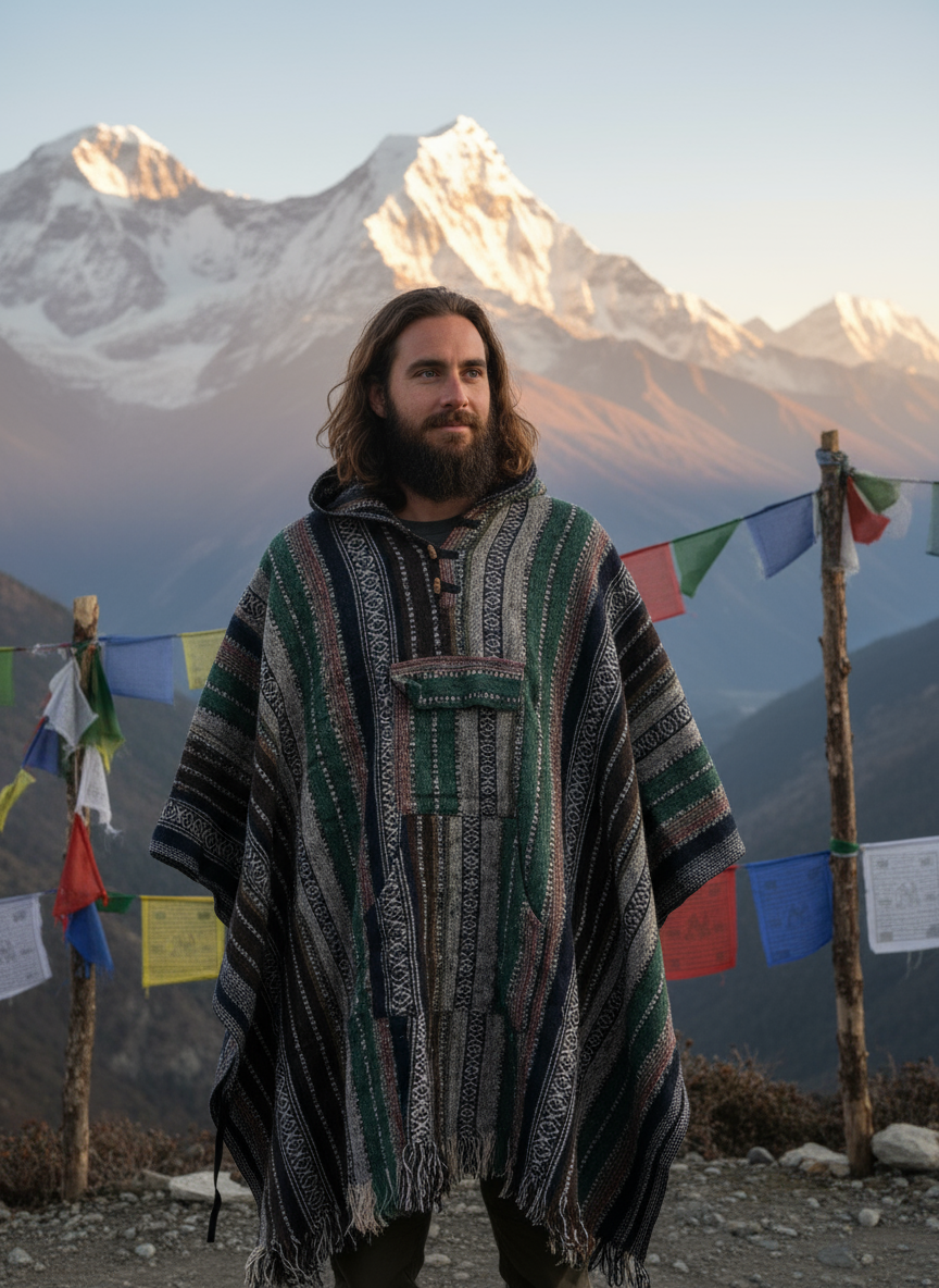 Bohemian style handcrafted hoodie poncho . These Poncho gives you style in cold and windy while keep you warm and cozy .