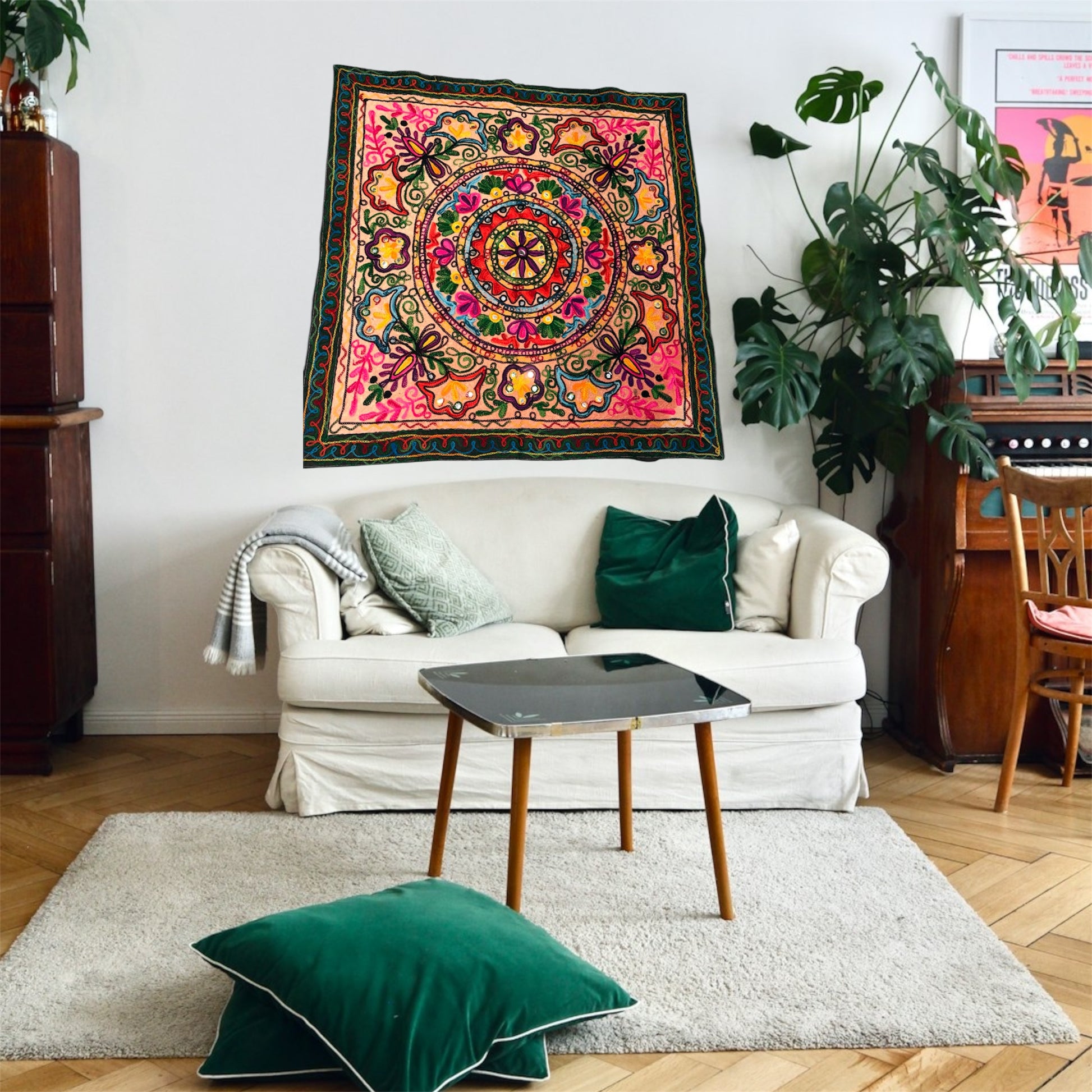 BOHEMIAN STYLE HANDCRAFTED SQUARE SHAPE TABLE RUNNER/ WALL HANGING/ TAPESTRY