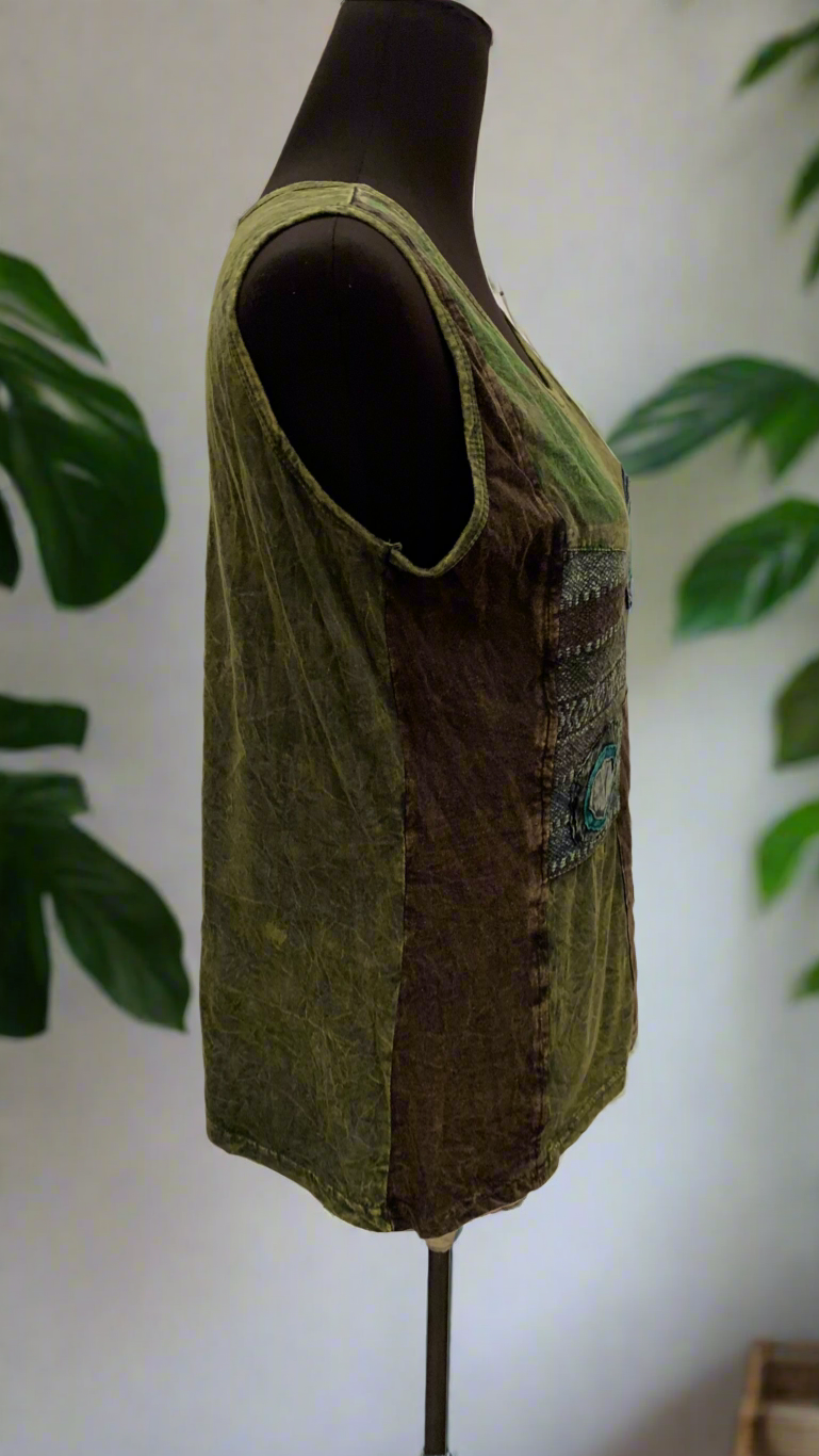 Boho stretchy Stone washed Cotton tank top are sleeveless.