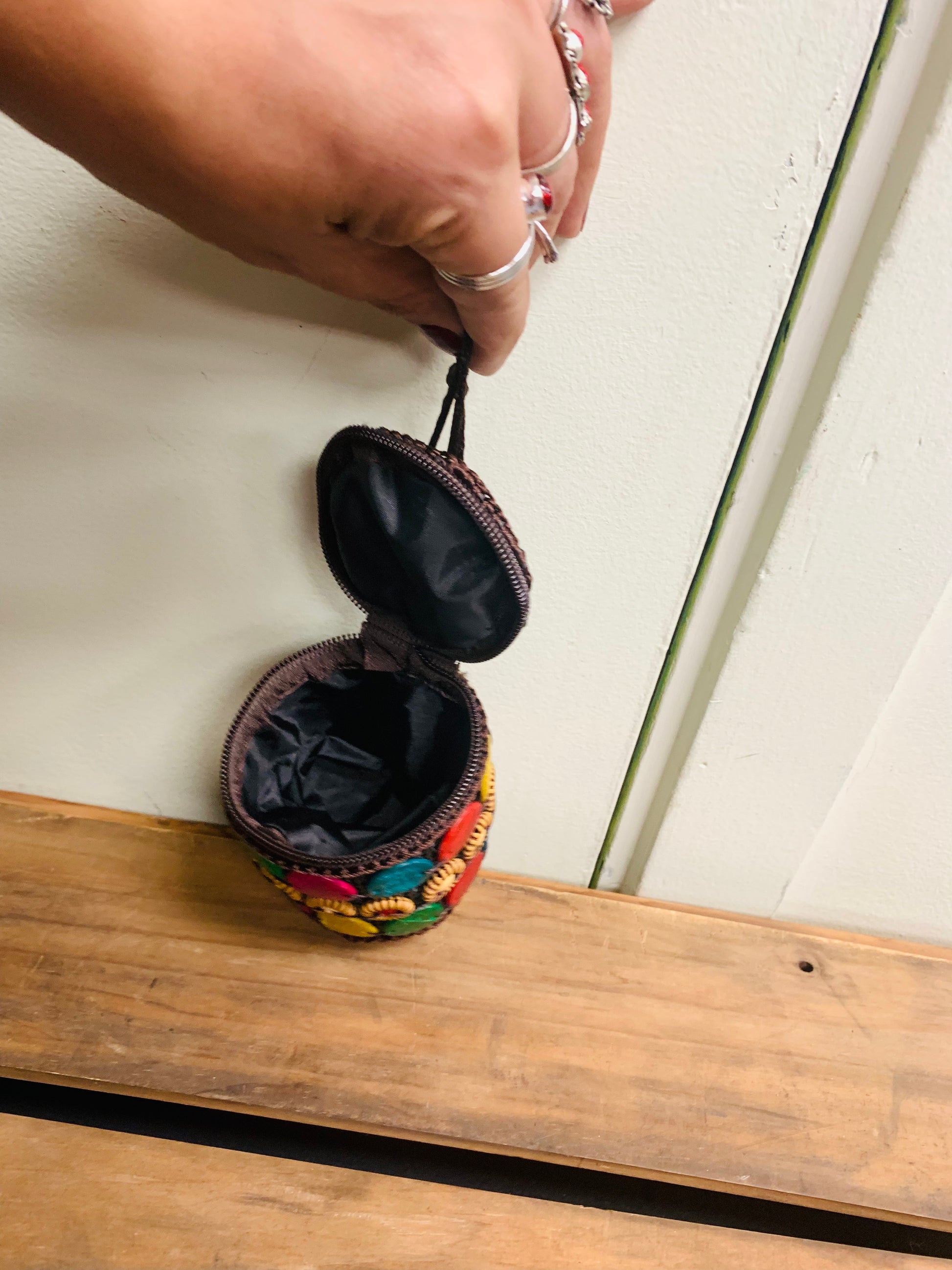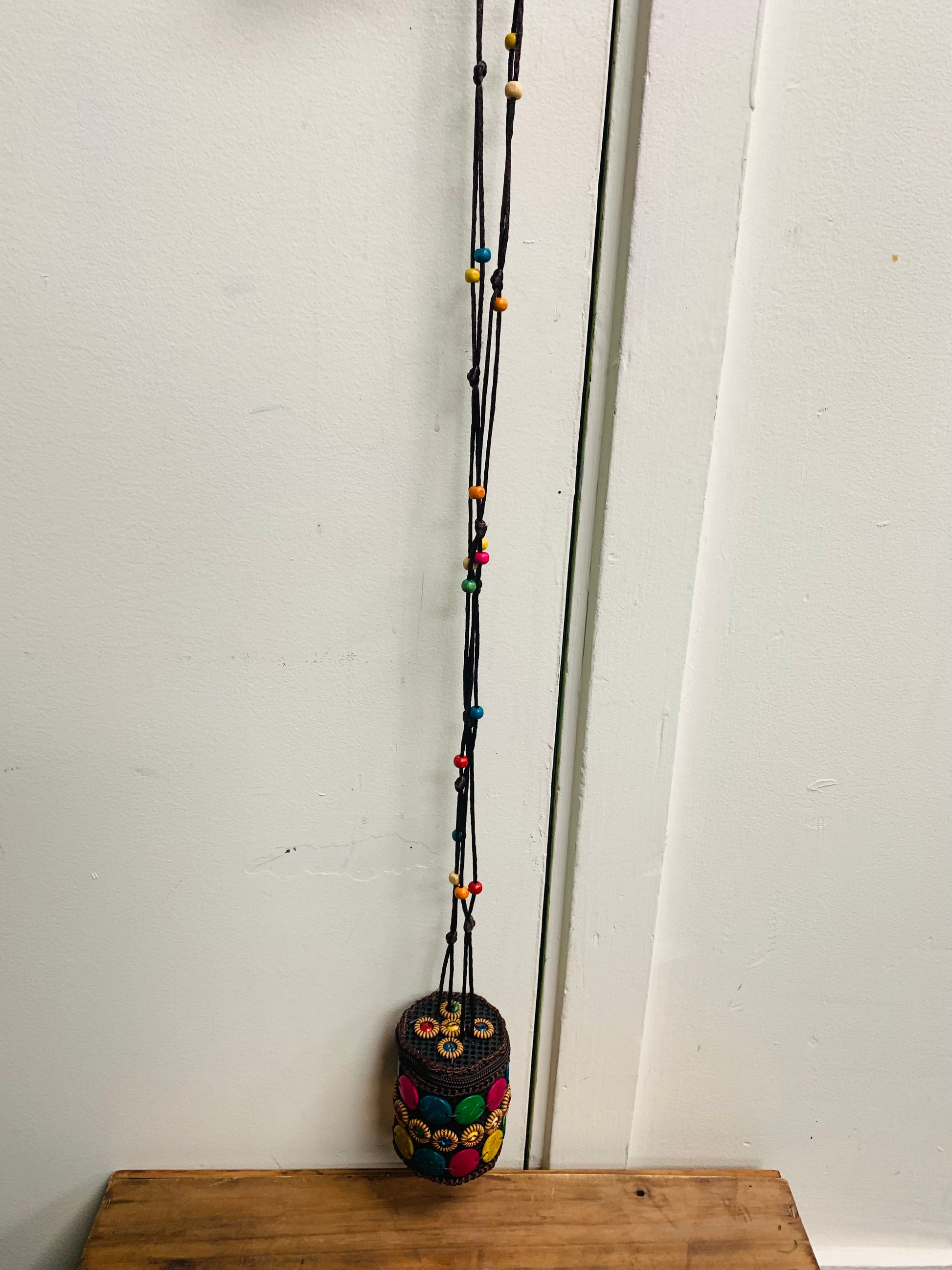 BOHEMIAN STYLE HANDCRAFTED WOODEN BEADS COIN POUCH # 5121