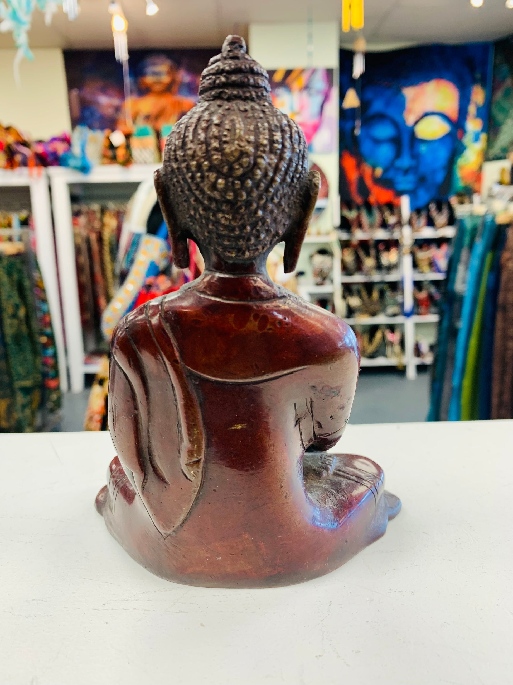 This statue of Lord Buddha (hand gesture) is a powerful Feng Shui addition to your decor. The hand gesture represents peace and dispels fear. Handcrafted in vintage hues of antique gold, the artwork has beautiful carvings at the back.