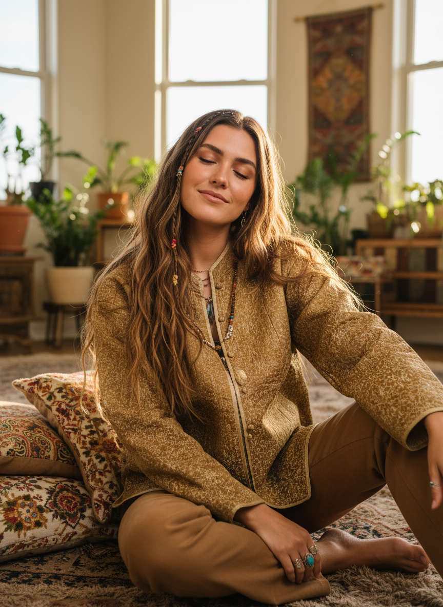 Bohemian style handcrafted waist length Quilting / Kantha jackets