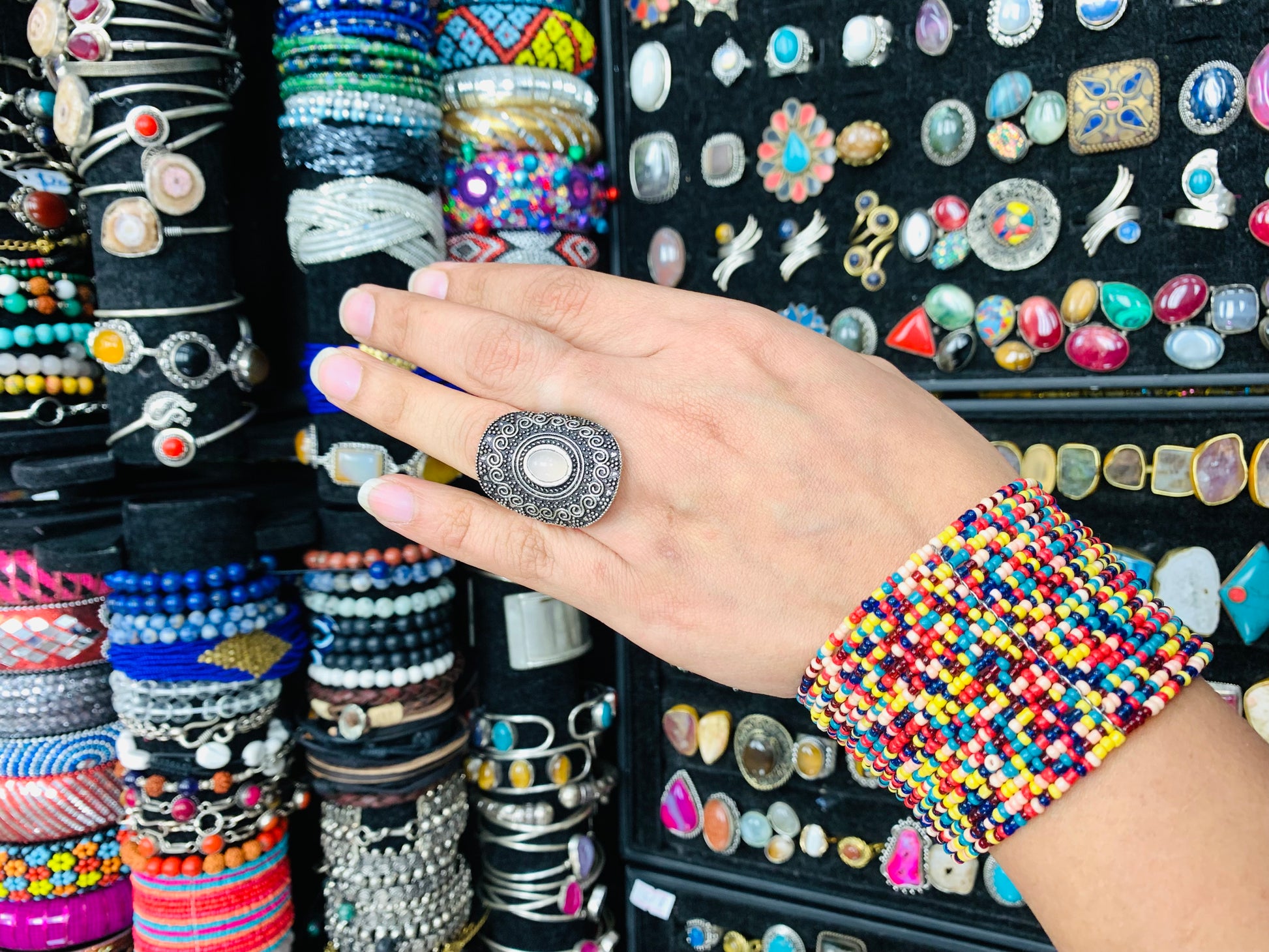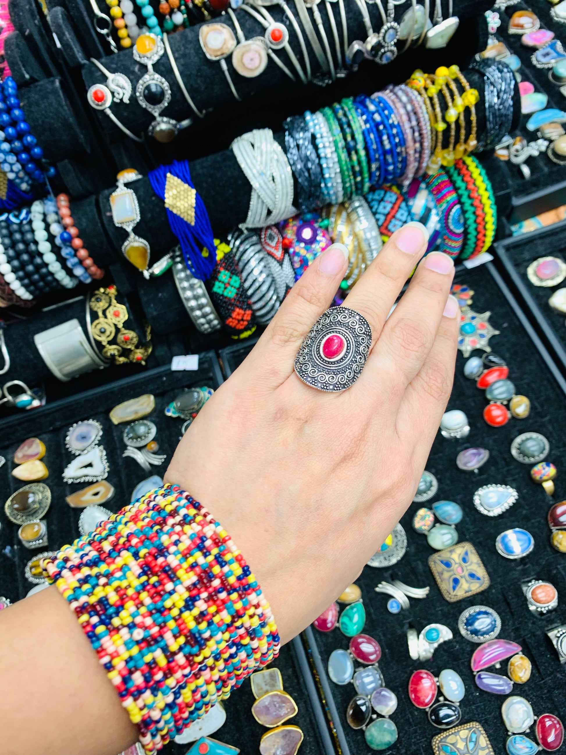 With such beautiful and intricate detailing, a bright and bold stone embedded in metal frame , our Ring is an incredible piece.