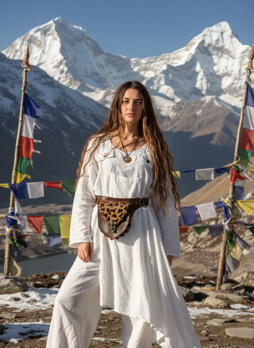 Boho Handcrafted Genuine leather Bum bag with pockets .